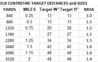 - CENTREFIRE: Shoot distances from 0 to...as far as you can... It is more about target size than the distances shot...but the point is, to start close and increment out to as far as you can go before it just becomes an impossible task. The main game of ELR Centrefire is 0 to 2 miles...however due to equipment and running costs, and the extreme effort to setup a course, many matches max out at between 1 and 1.5 miles.